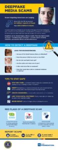 “Deepfakes are becoming increasingly sophisticated and harder to detect,” said Sam Kunjukunju, vice president of consumer education for the ABA Foundation. “This infographic provides practical tips to help consumers recognize red flags and protect themselves from these deceptive schemes. We are grateful to the FBI for their help in raising awareness about these scams.”